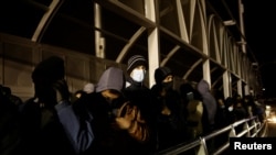 Unos 200 migrantes que habían caminado hasta la barrera permanecieron allí hasta altas horas de la noche.